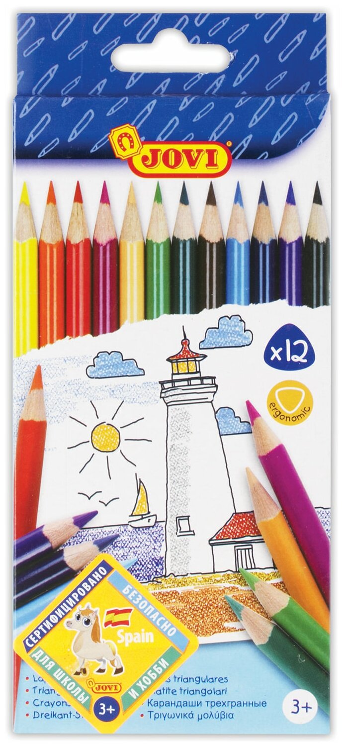 Отзывы на Карандаши цветные 12 цветов Jovi (L=175мм, D=7.5мм, d=3мм, 3гр) картонная упаковка (733/12)