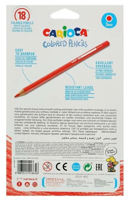 Карандаши цветные Carioca 41865 18 цветов коробка/европодвес информация: