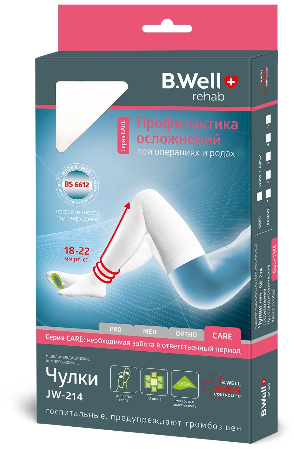 B.Well Чулки компрессионные противоэмболические CARE I класс 18-22 мм рт.ст. JW-214 5 White, 1 шт 1 490 ₽