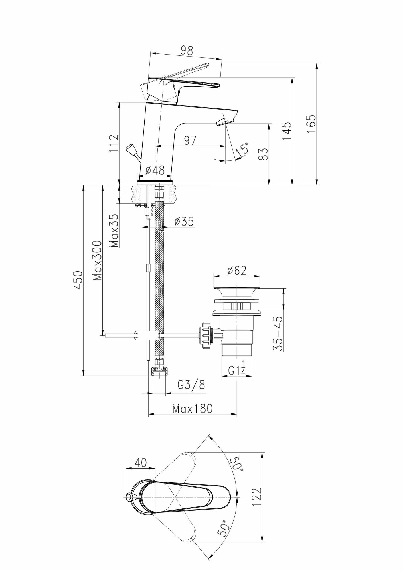 | Длина излива | 97 мм |