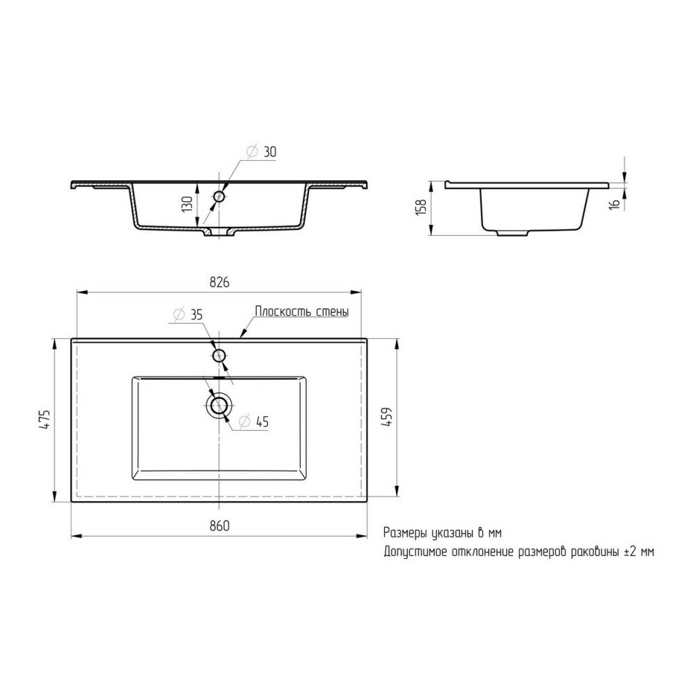| Отверстия под смеситель | 1, расположение в центре |