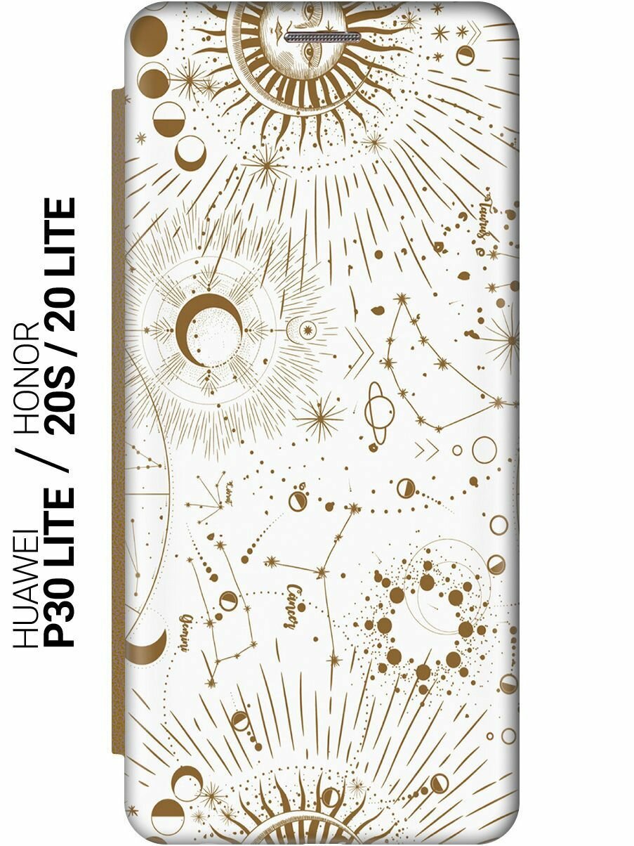 Чехол-книжка на Honor 20 Lite / 20s / Huawei P30 Lite / Хуавей П30 Лайт / Хонор 20 Лайт / 20s c принтом "Карта звездного неба" золотистый информация: