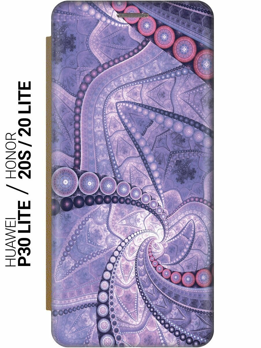 Чехол-книжка на Honor 20 Lite / 20s / Huawei P30 Lite / Хуавей П30 Лайт / Хонор 20 Лайт / 20s c принтом "Сиреневая абстракция" золотистый информация: