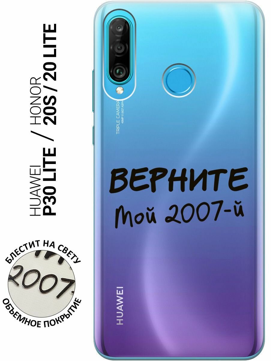 Силиконовый чехол на Honor 20 Lite, 20s, Huawei P30 Lite, Хуавей П30 Лайт, Хонор 20 Лайт, 20s с 3D принтом "2007" прозрачный 474 ₽