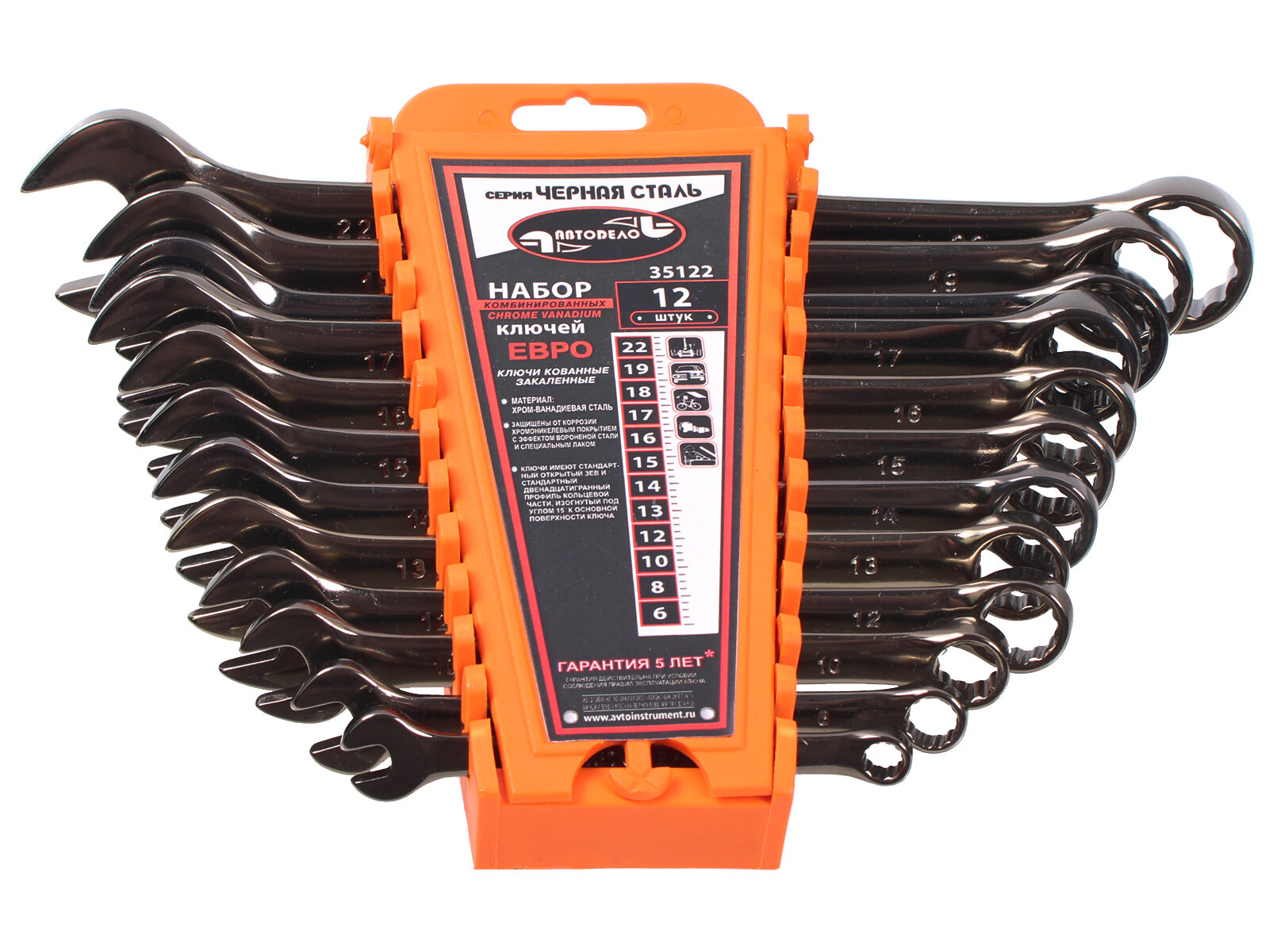 Набор ключей комбинированных 12 пр. 6-22 мм черная сталь холдер евро АвтоДело автодело 35122 | цена за 1 шт