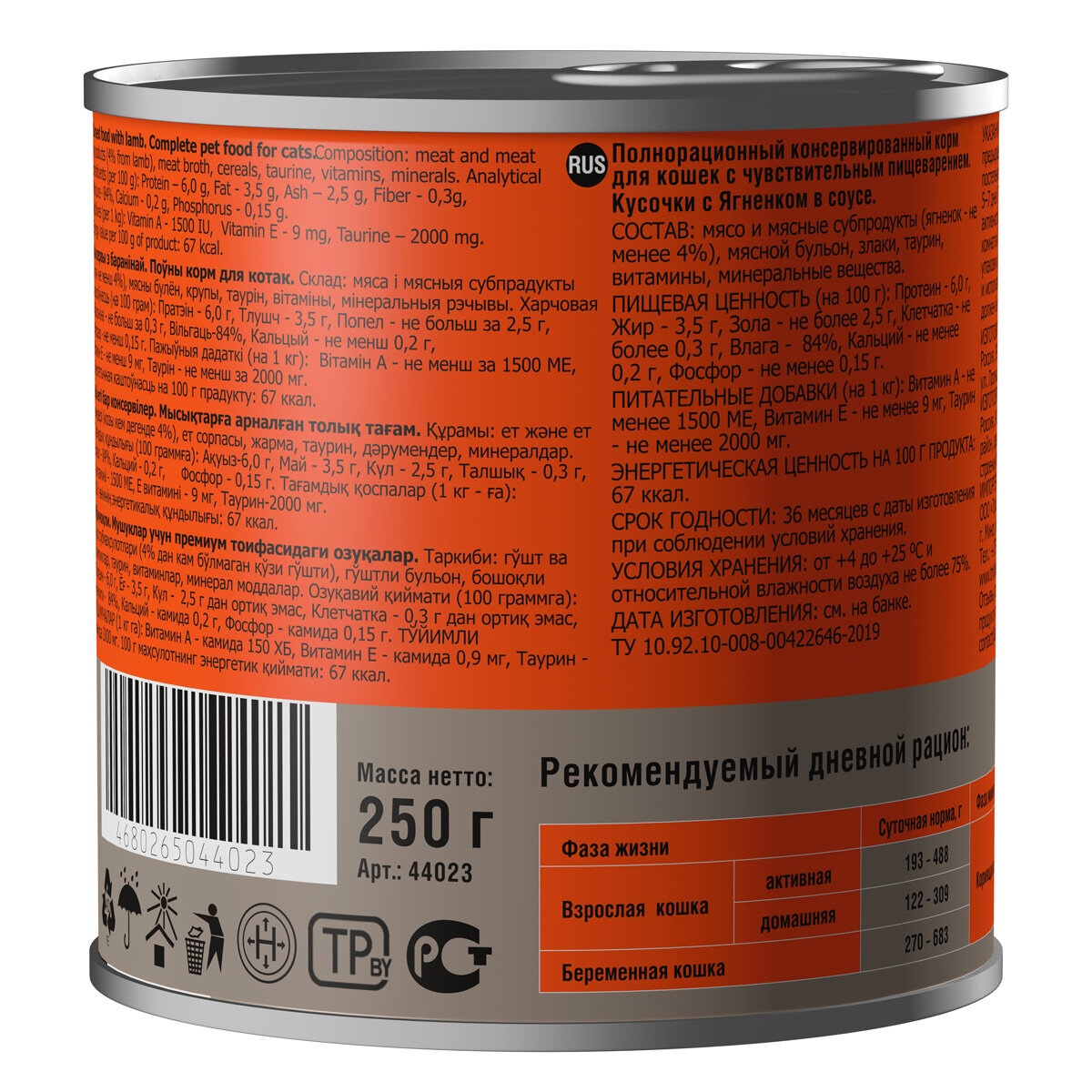 Консервы Darsi для кошек с чувствительным пищеварением "Кусочки с Ягненком в соусе", 250гр, 2шт информация: