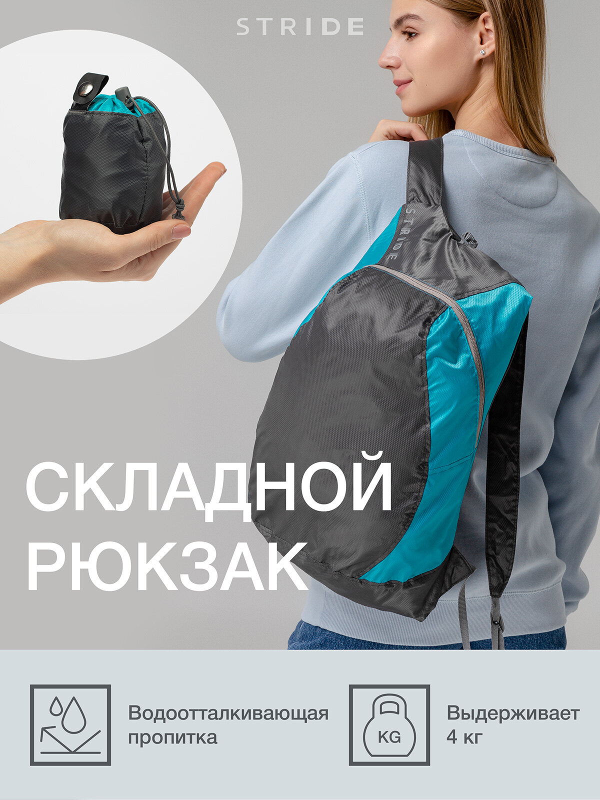 10 цен на Складной рюкзак Wick мужской женский, бирюзовый