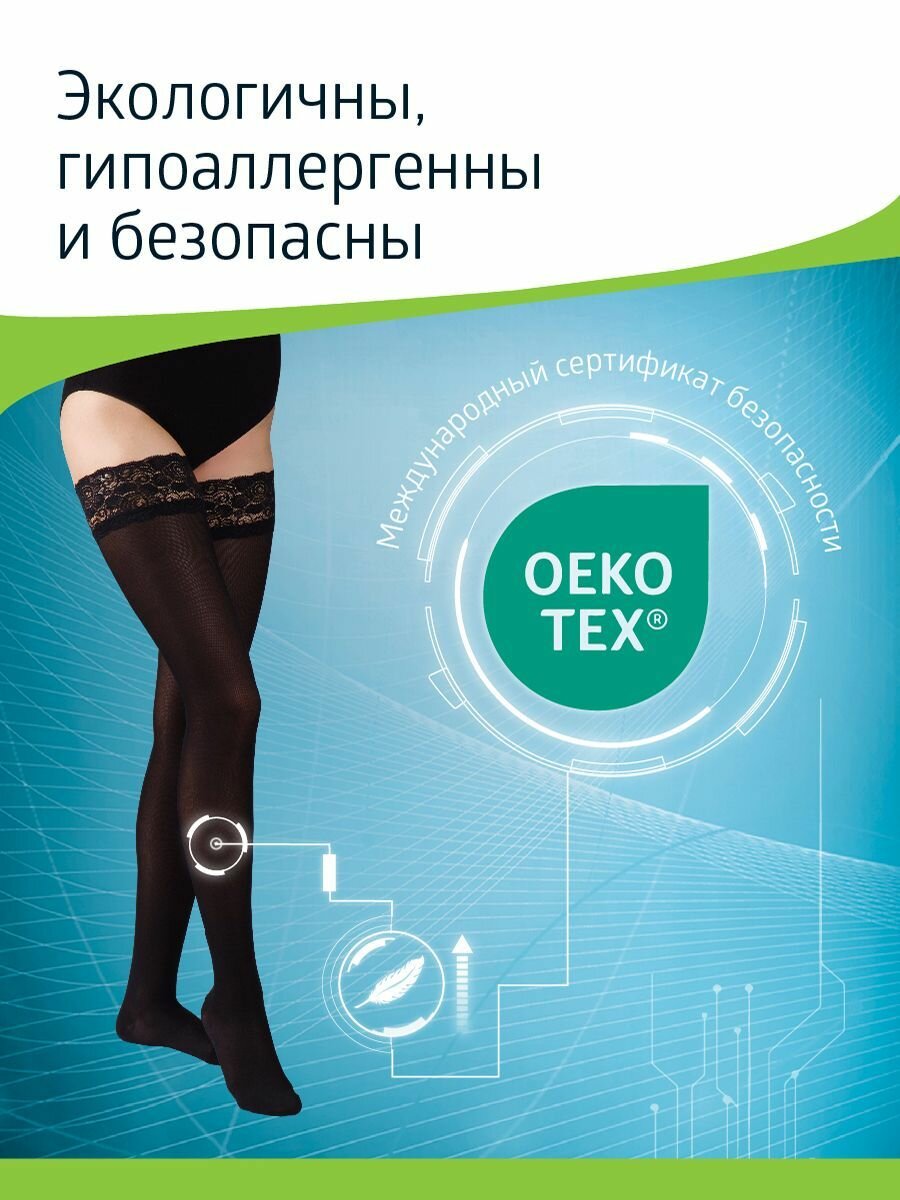 Чулки компрессионные B.Well, JW-212, прозрачные с ажурным верхом, 1 класс, размер 3, цвет Nero B.WEL