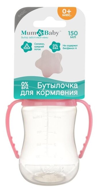 Бутылочка для кормления Mum&Baby классическое горло, приталенная, с ручками, 150 мл, от 0 мес, цвет розовый (150 мл., Приталенная - ручки, б|рис)