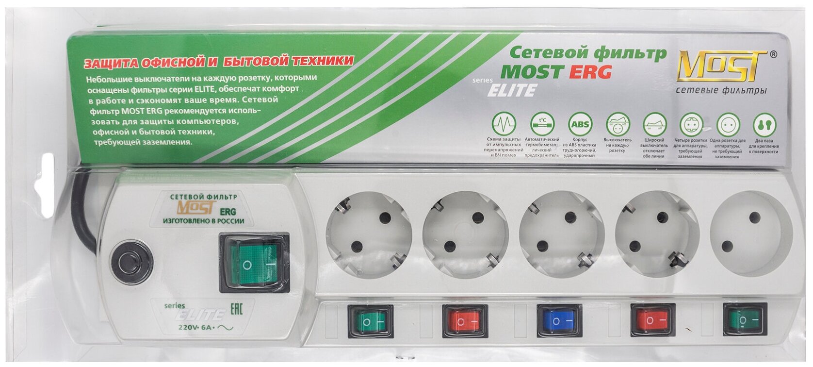 Сетевой фильтр MOST ЕRG Elite 5 гнезд 3 м белый информация: