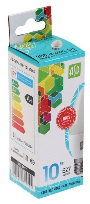 Отзывы на Лампа светодиодная LED-СВЕЧА-standard 10Вт 230В Е27 4000К 900Лм ASD (5 штук) (арт. 4690612015545)