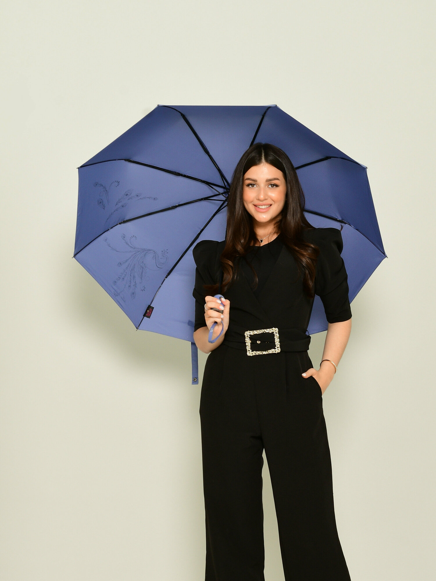 Зонт женский автомат, зонтик взрослый складной антиветер 2602/синийпетроль
