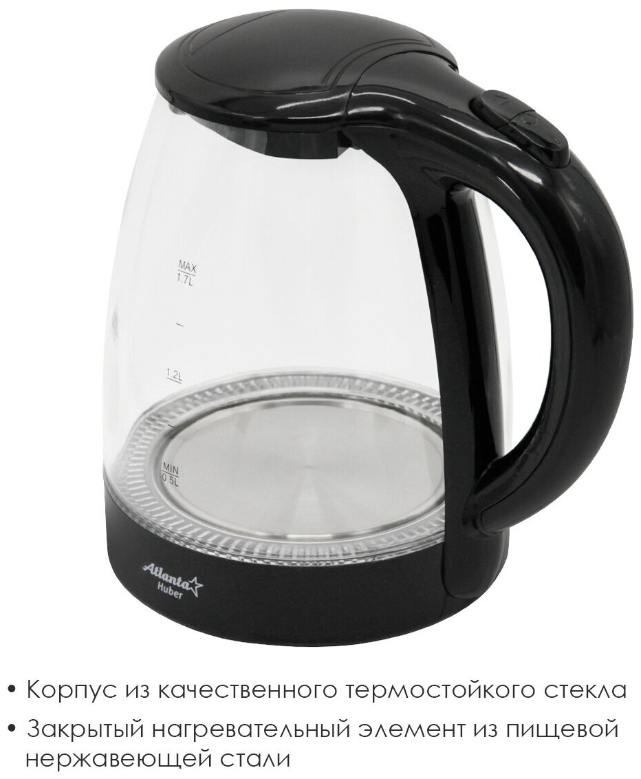 Чайник стеклянный электрический Atlanta ATH-2470 (black) информация: