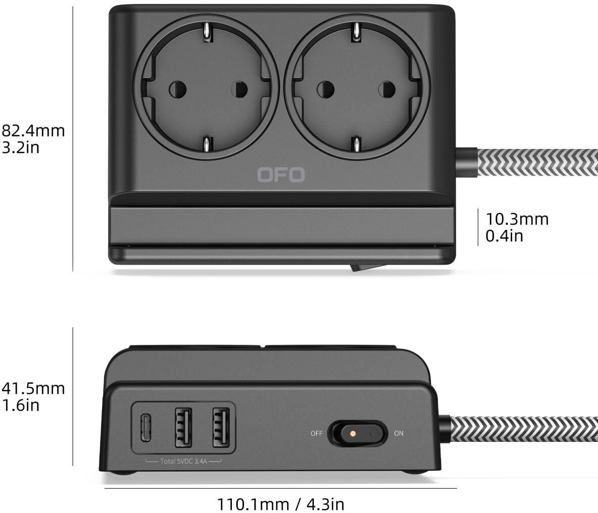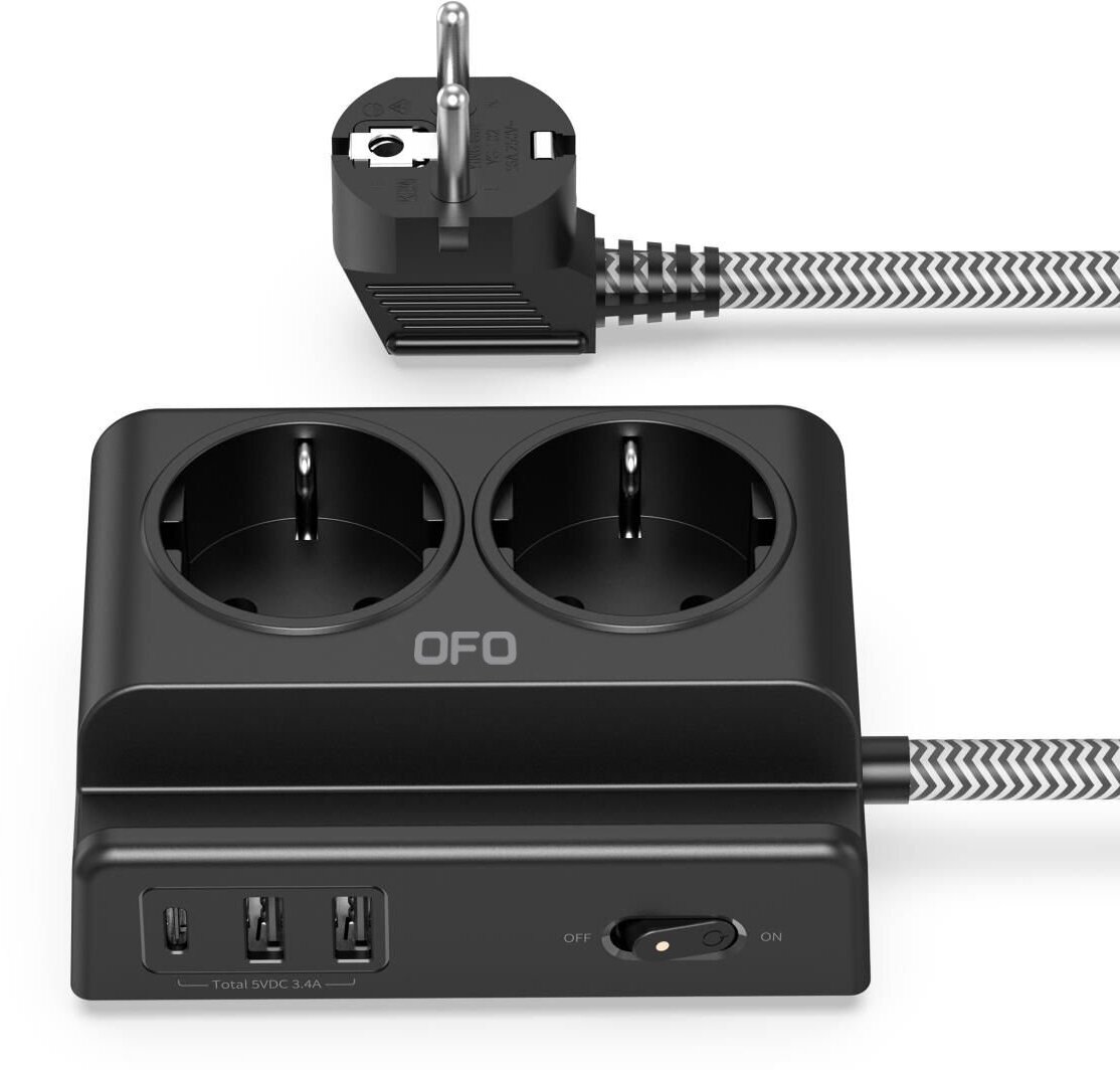 Отзывы на Сетевой фильтр OFOPRO (Чёрный), удлинитель электрический бытовой, 2 гнезда-розетки, с/з, 2 USB, 1 USB TYPE C, 1.5м, 10А/2500Вт