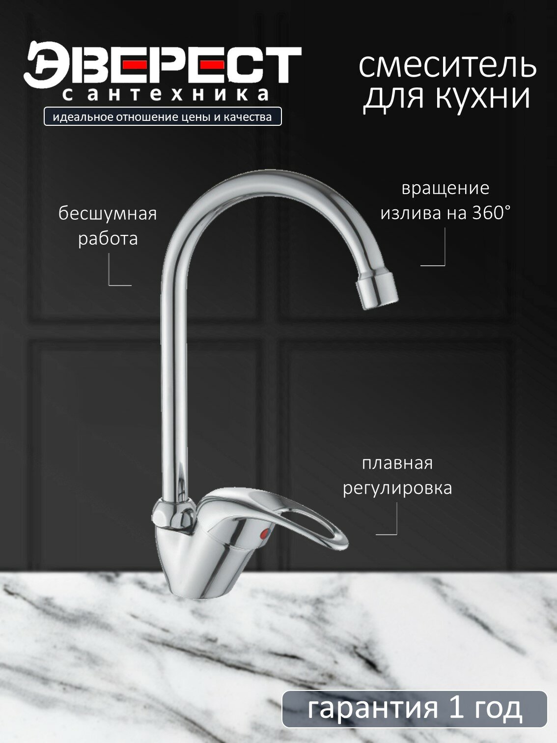 10 цен на Смеситель Эверест для кухни с высоким изливом B51-040 хром