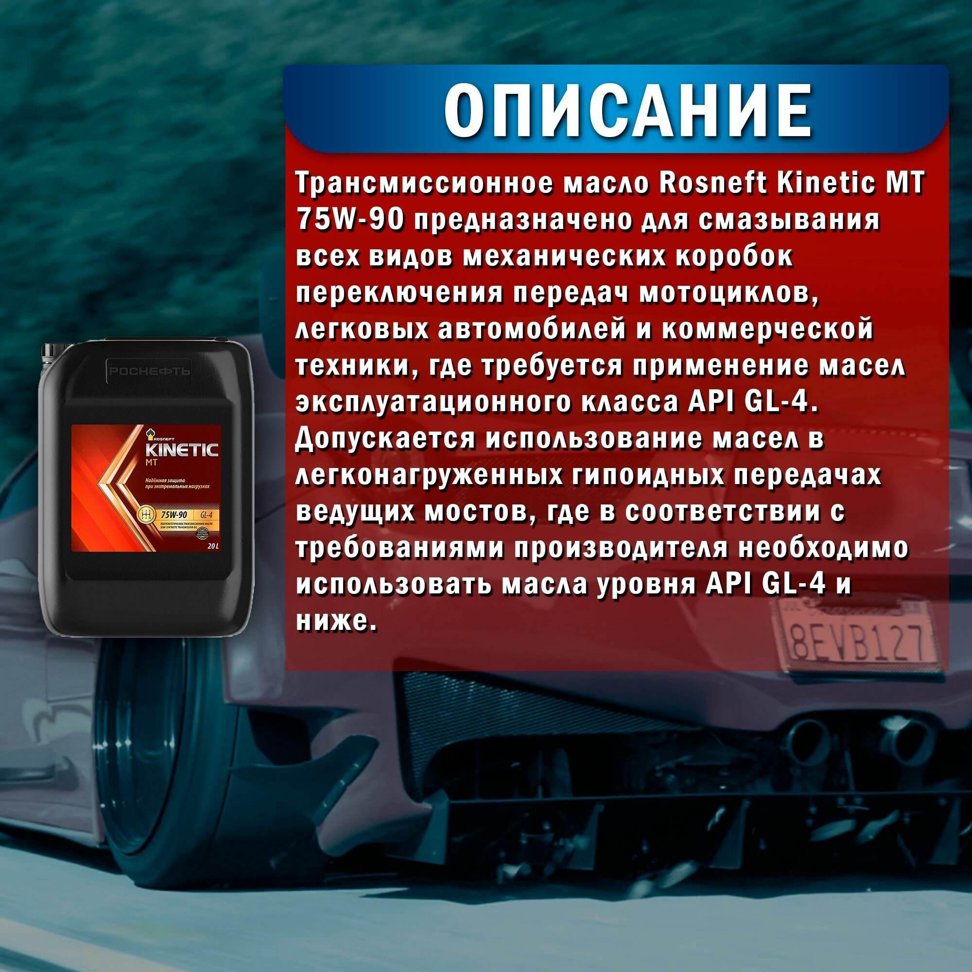 Rosneft Kinetic Mt 75W90 П/С (Gl-4) 20Л Rosneft арт. 8717 информация: