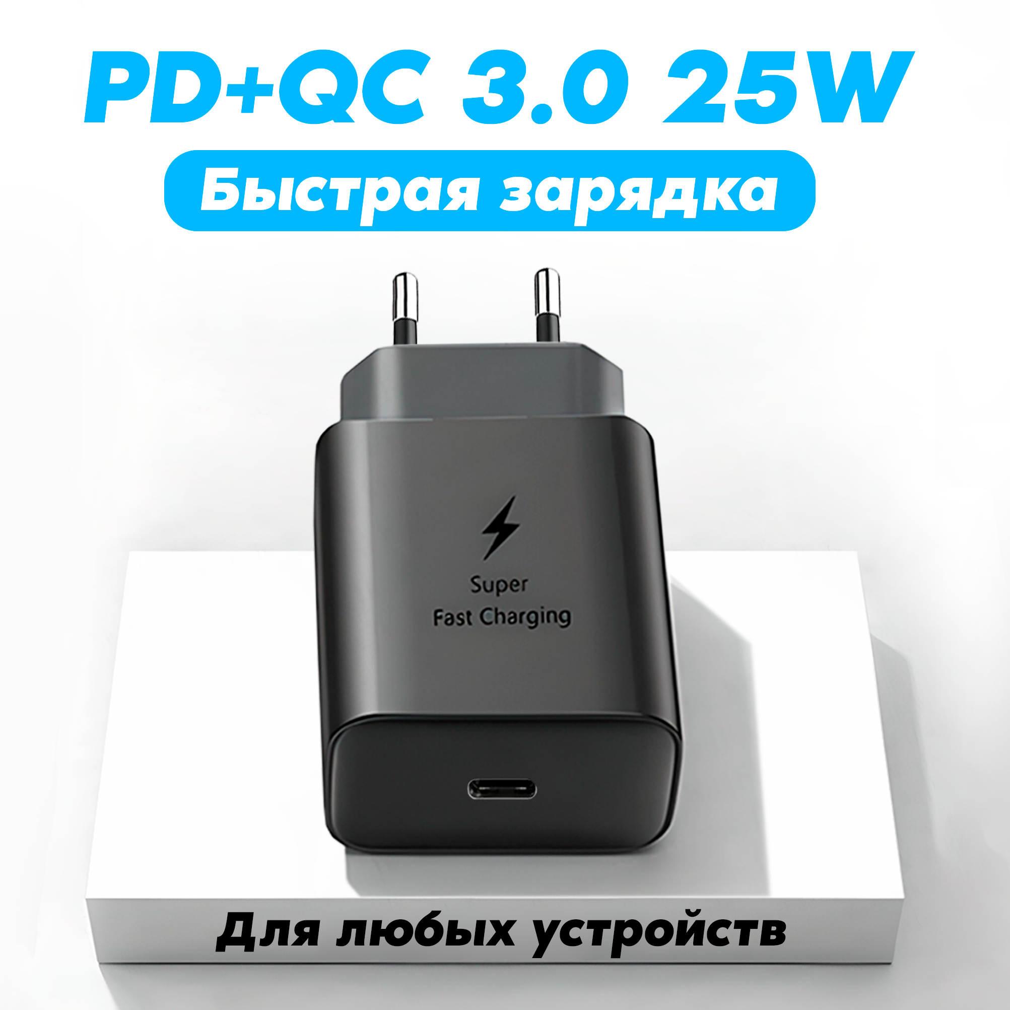 Сетевая зарядка для телефона AMFOX AH-25 универсальная с разъемом Type-C, 25 Вт, белая / зарядное устройство, блок питания адаптер айфон