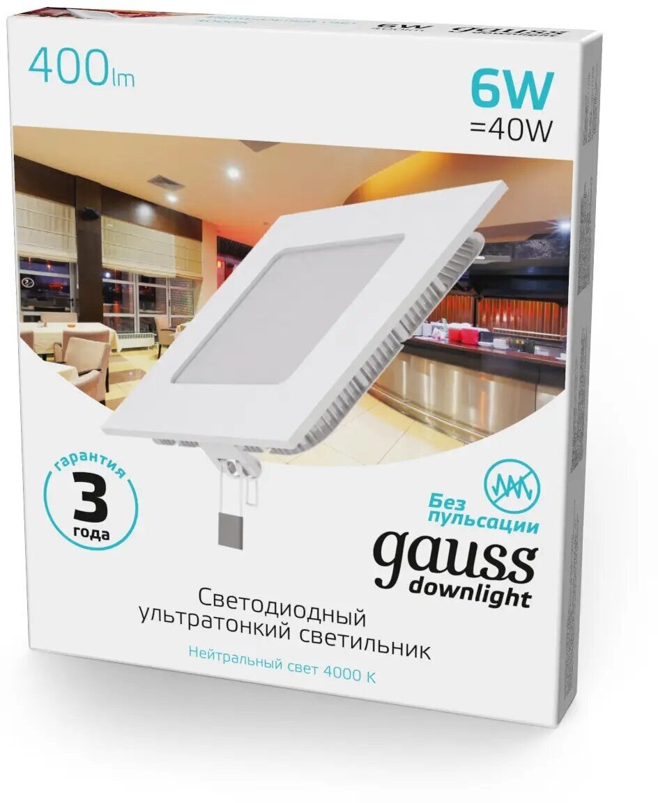 Отзывы на Встраиваемый светильник Gauss ультратонкий квадратный IP20 6W,120х120х22, 105х105, 4000K 400лм 1/20