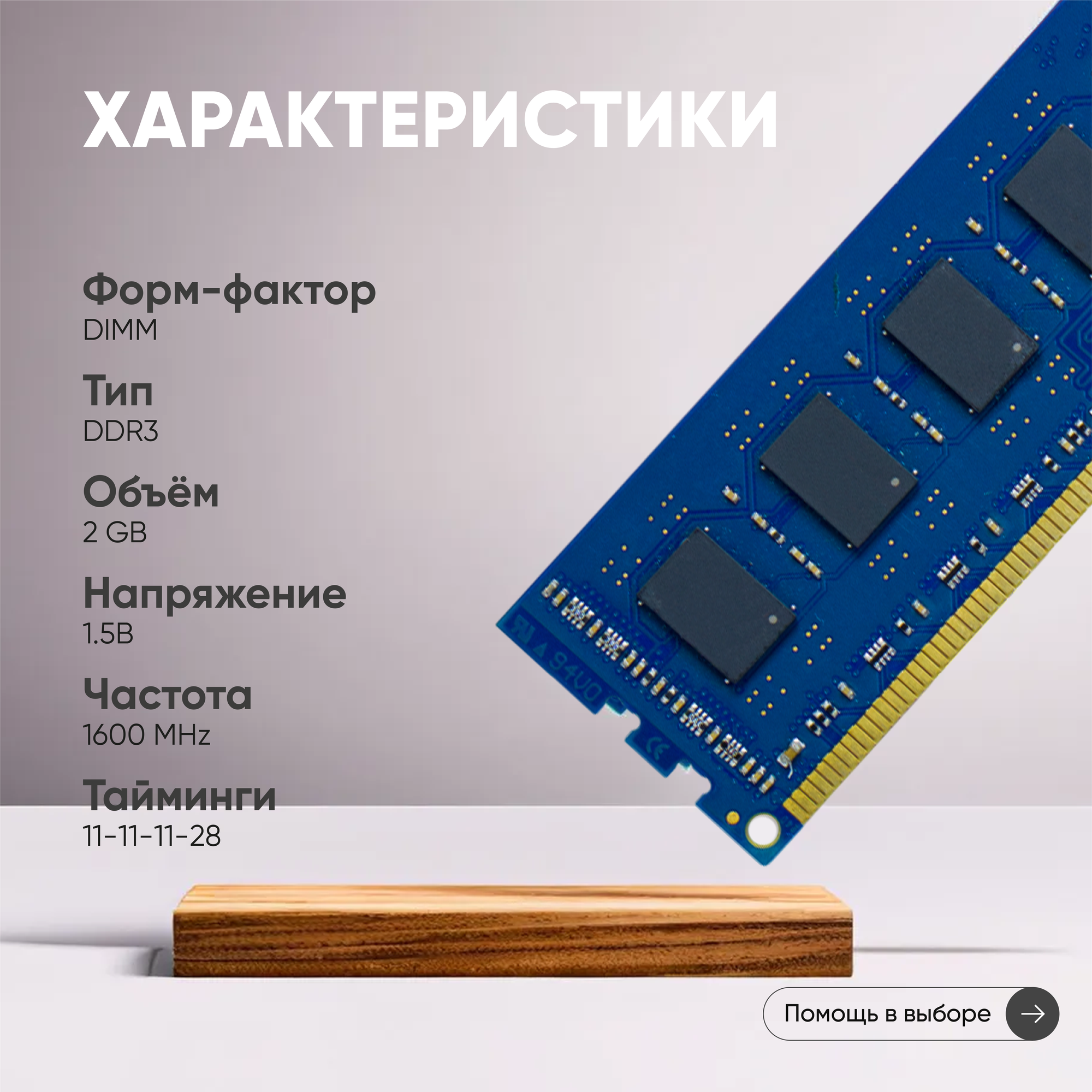 Модуль памяти Kingston DIMM DDR3, 2ГБ, 1600МГц, PC3-12800 информация: