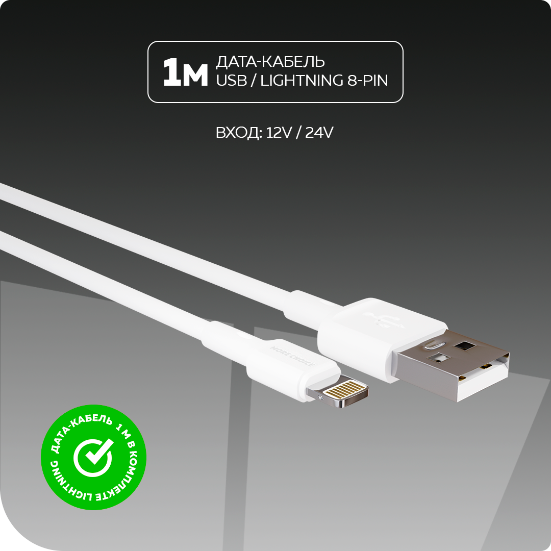 Автомобильное зарядное устройство More choice AC23i, 2,4 А, Apple 8-pin, белый 490 ₽
