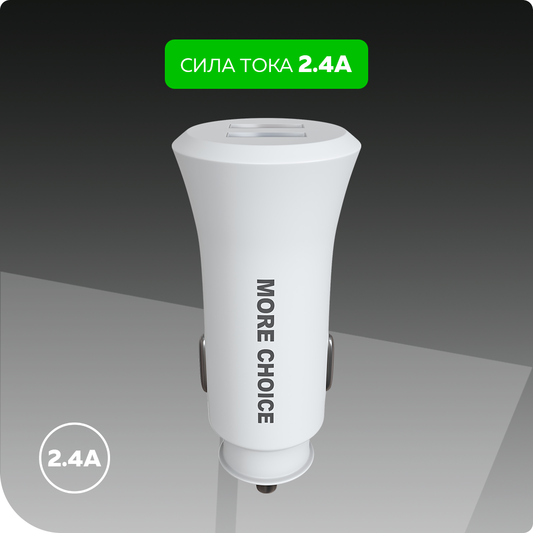 Автомобильное зарядное устройство (от прикуривателя) More Choice AC31, два разъема USB, 2.4A, черный