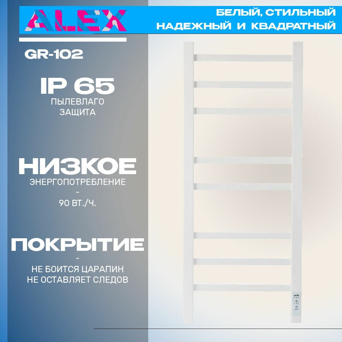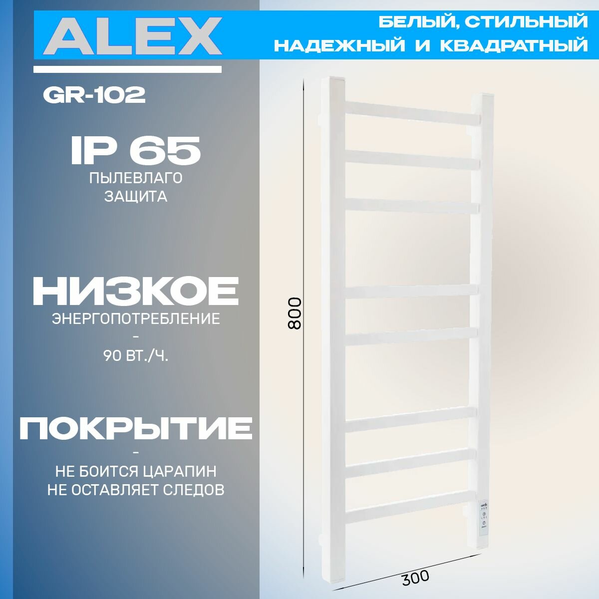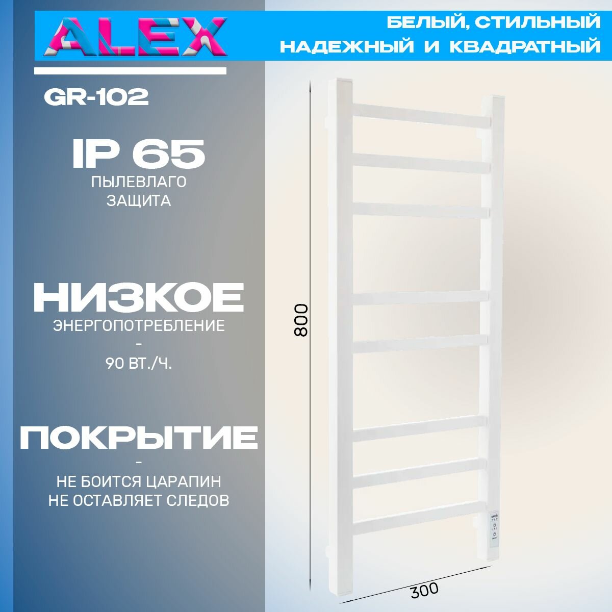 10 цен на Полотенцесушитель Электрич. с/т GROIS Alex GR-102 300/800 П8 RAL9016 U белый матовый