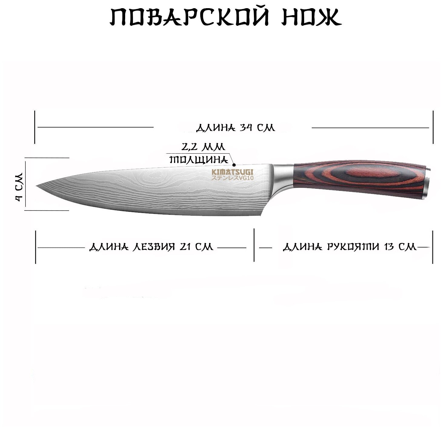 | Общая длина ножа | 34 см |