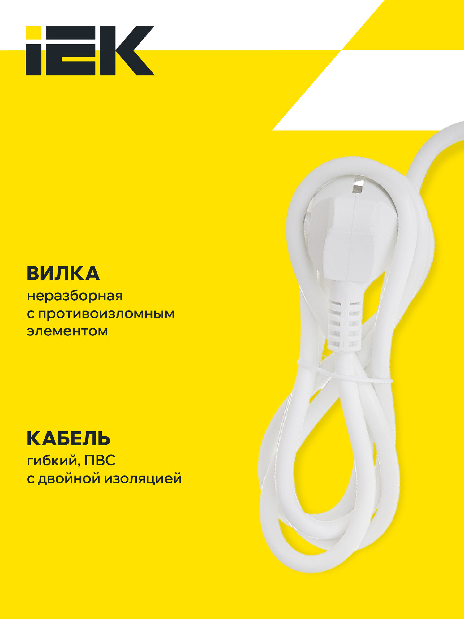 Удлинитель IEK У03, ПВС 3 x 1 мм², с заземлением, 3 розетки, 1,5 м, белый 278 ₽