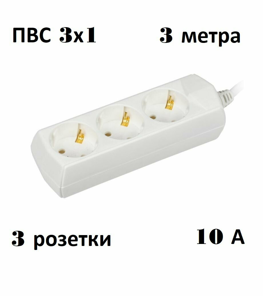 Удлинитель Generica У03, ПВС 3 x 1 мм², с заземлением, 3 розетки, 3 м, белый