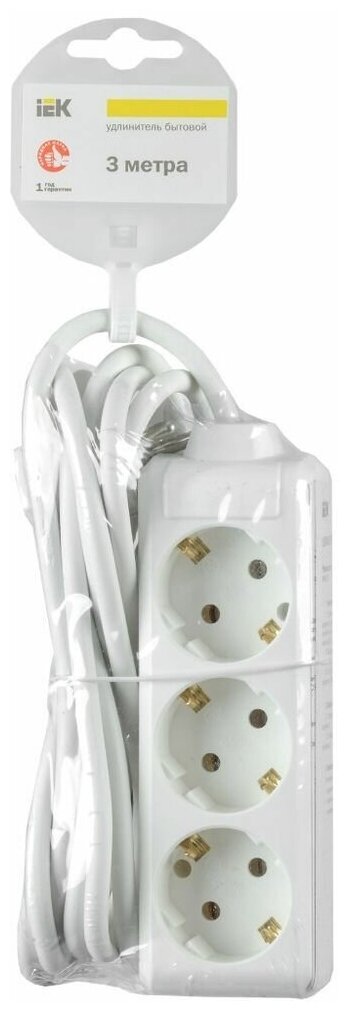 Удлинитель IEK WYP10-16-03-03-ZK-N, 3 розетки, 3 м, с/з, 16А / 3500 Вт