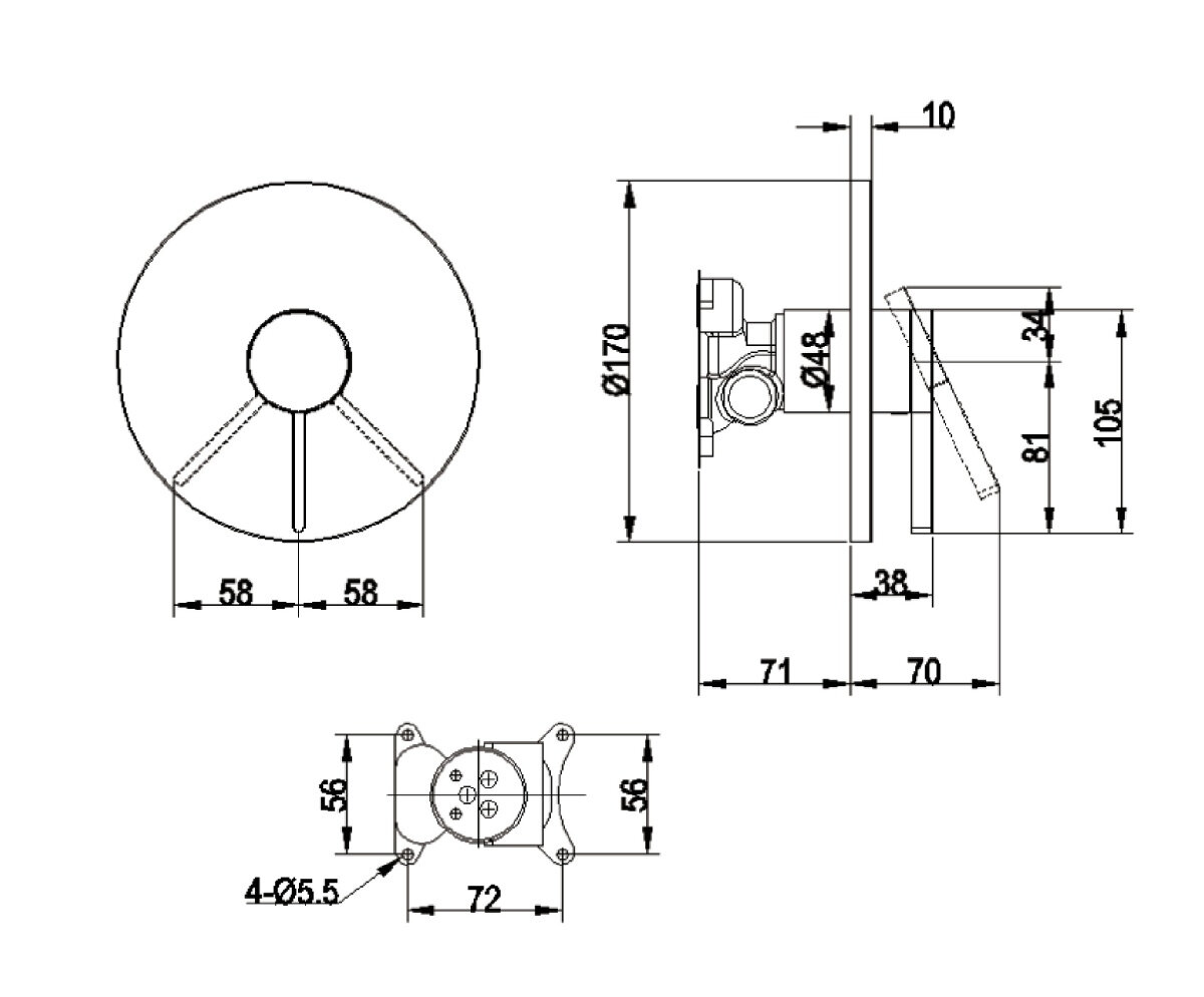 TVS10335300061 ARCHITECTURA Смеситель настенный, однорычажный, с переключателем, скрытого монтажа, хром