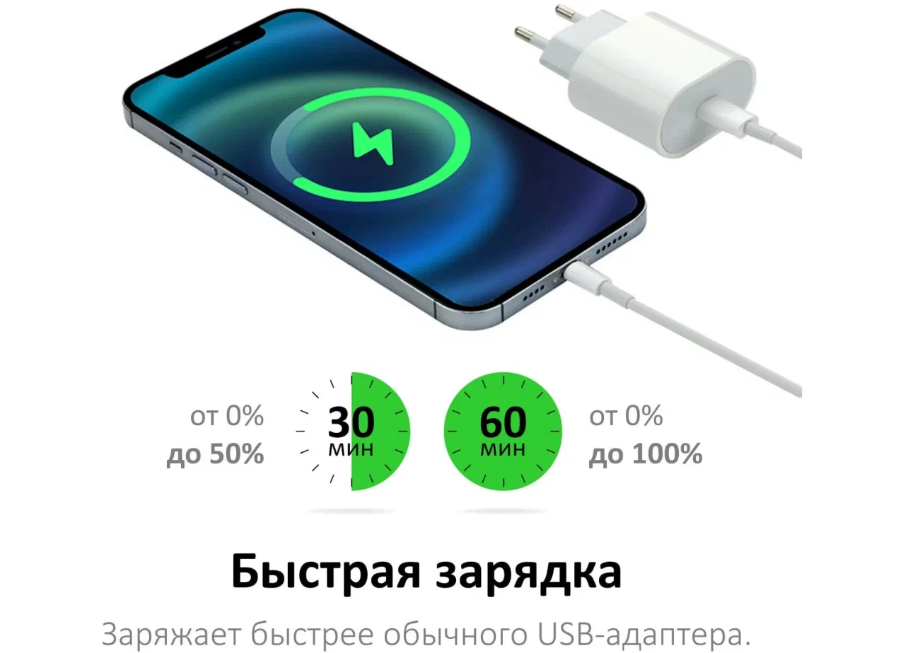 Зарядное устройство для iPhone, iPad, AirPods, быстрая зарядка для айфона 20W+ кабель в комплекте информация: