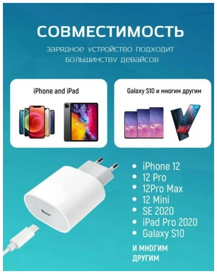 Сетевое зарядное устройство для телефона / Сетевой адаптер USB- C 20 W + Кабель Type- C - Lightning 420 ₽