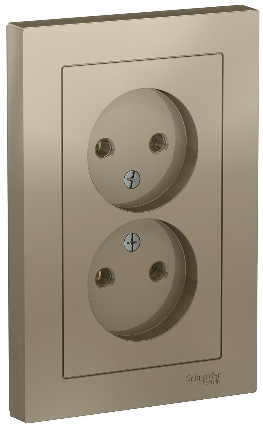Розетка Schneider Electric AtlasDesign шампань, двойная, без заземления, в сборе, 16 А информация: