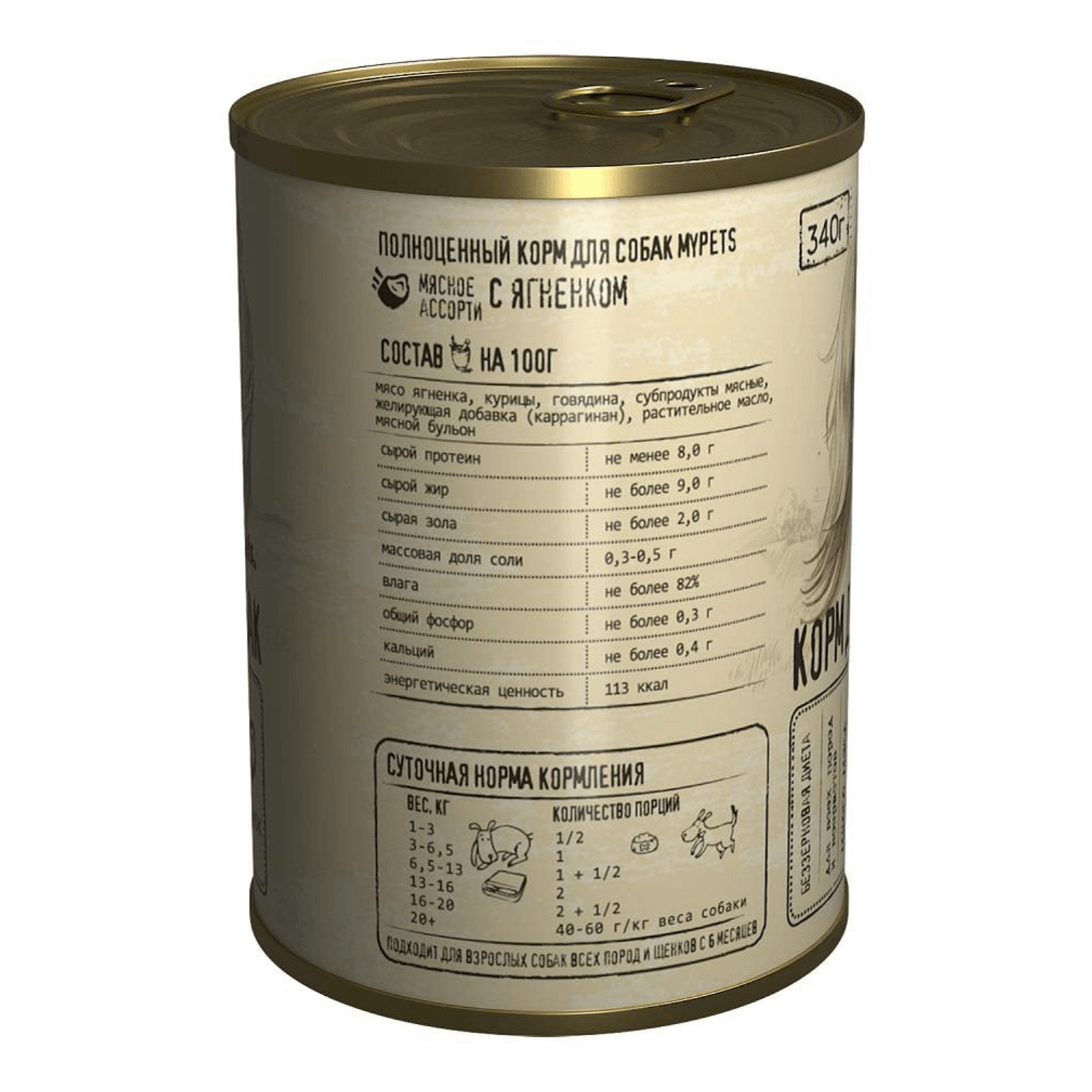 Корм для собак MYPETS мясное ассорти с ягненком, банка 340г