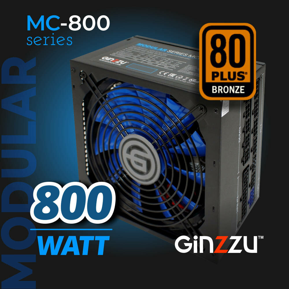 Блок питания Ginzzu MC800 14CM 80 PLUS Bronze модульный. информация: