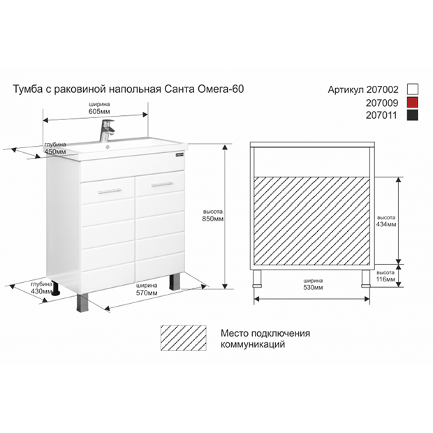 Тумба с раковиной СанТа Омега 60 информация: