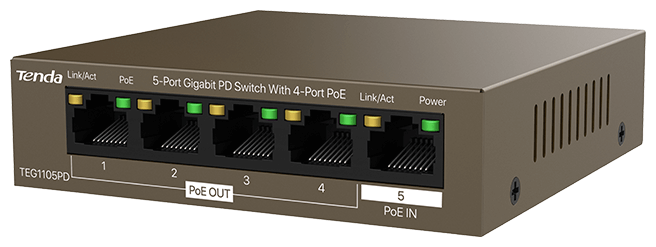 Отзывы на Tenda TEG1105PD 5-портовый гигабитный PD коммутатор с 4 - PoE портами
