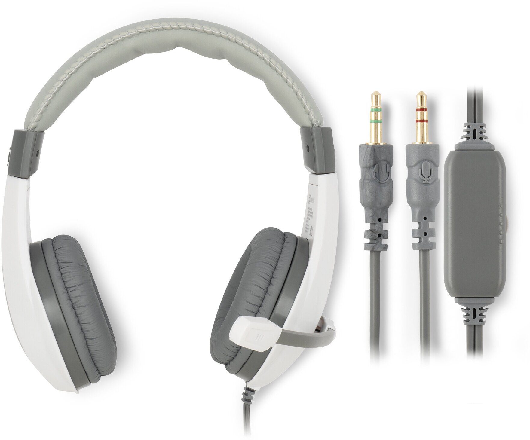 Наушники с микрофоном Оклик HS-L600 серый 1.8м мониторные (1532023), 20Гц-20КГц, проводные, 2x3.5 мм, 50мВт, микрофон однонаправленный, крепление оголовье