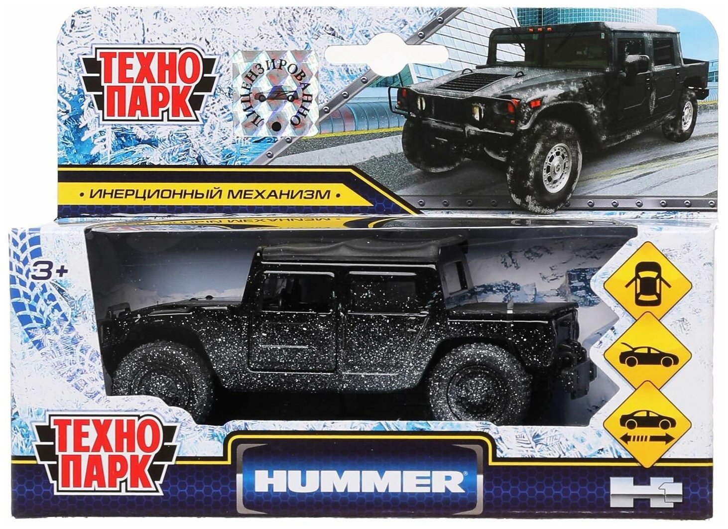 10 цен на Технопарк. Модель "Hummer H1 Пикап" в снегу 12см, металл. дв, баг.инерц. арт.SB-18-09-H1-N(SNOW)-WB