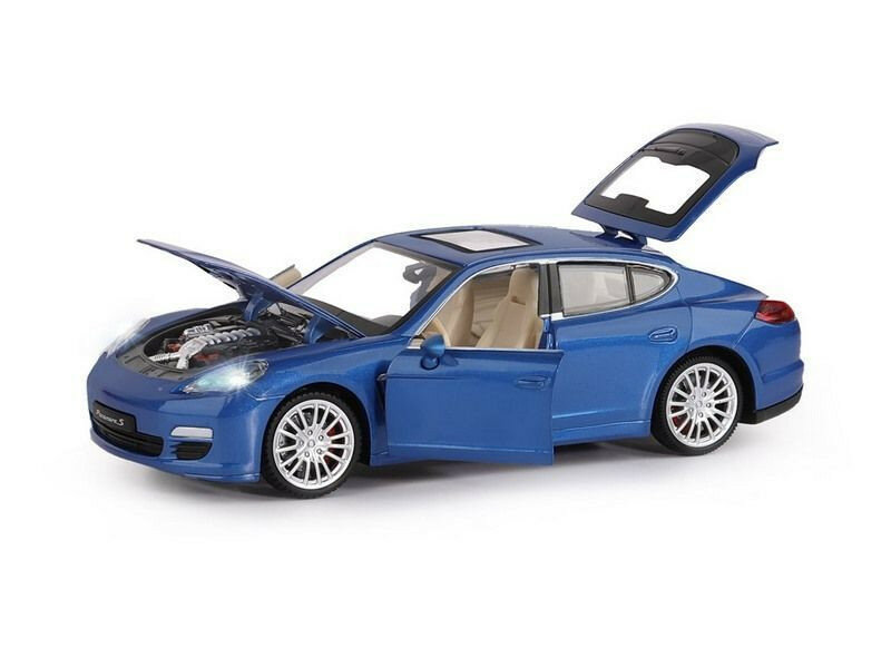 Машина металлическая Porsche Panamera S, 1:24,открываются двери, капот и багажник, световые и звуковые эффекты, цвет синий