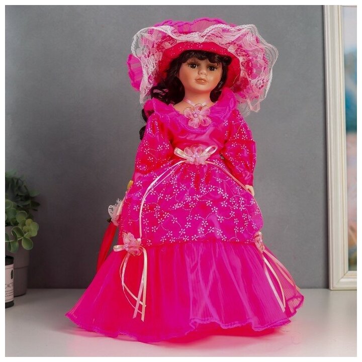 Кукла коллекционная керамика "Леди Амелия в ярко-розовом платье" 40 см (1 шт.) информация: