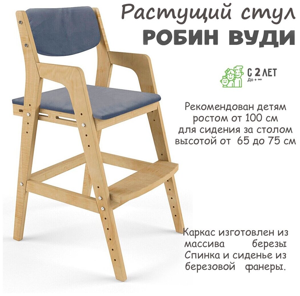 Стул детский растущий "Вуди" с чехлом, цвет: без покрытия/Серый информация: