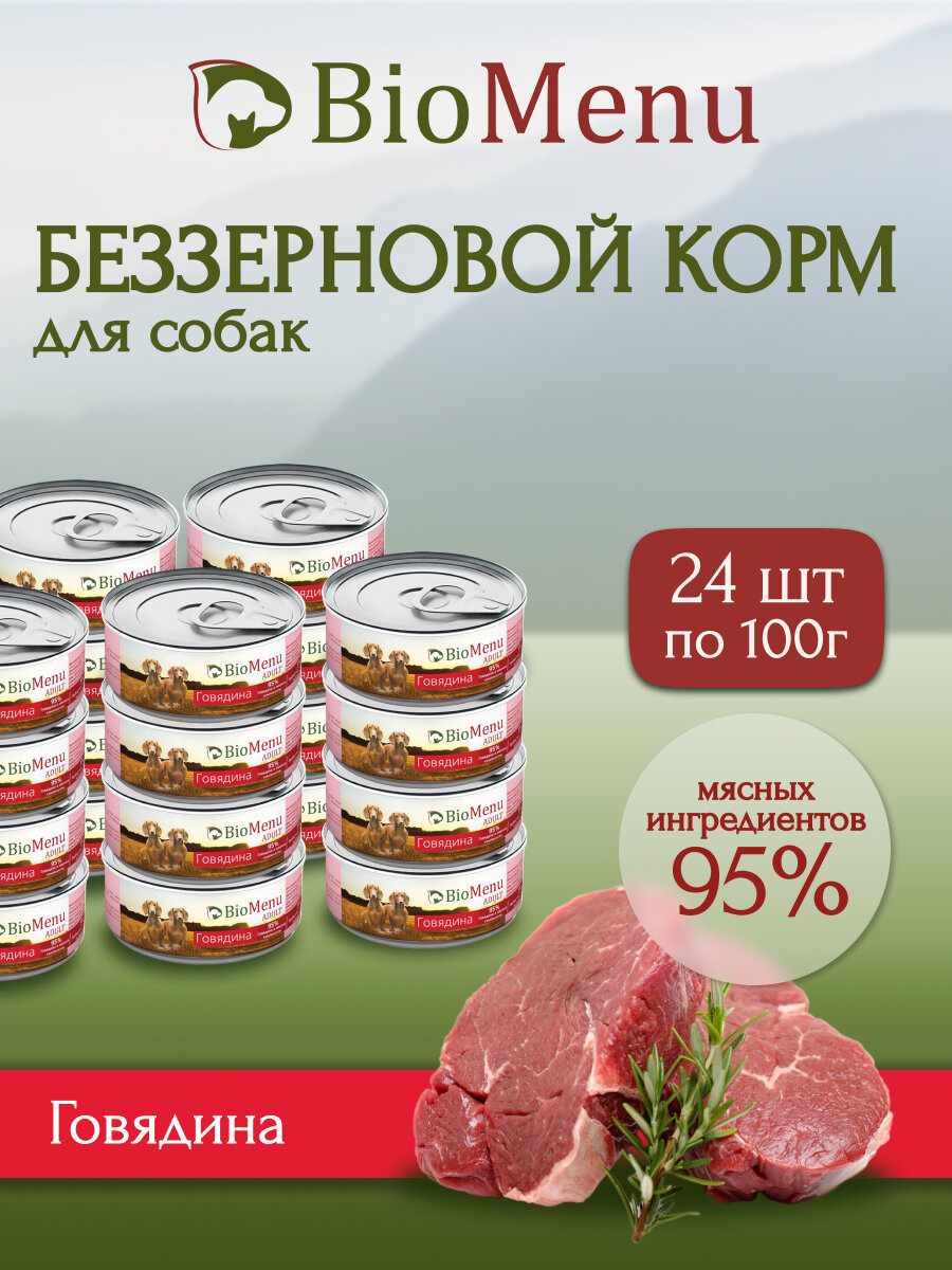 10 цен на Biomenu Adult Консервы для Собак Говядина 95%-Мясо 24х100г
