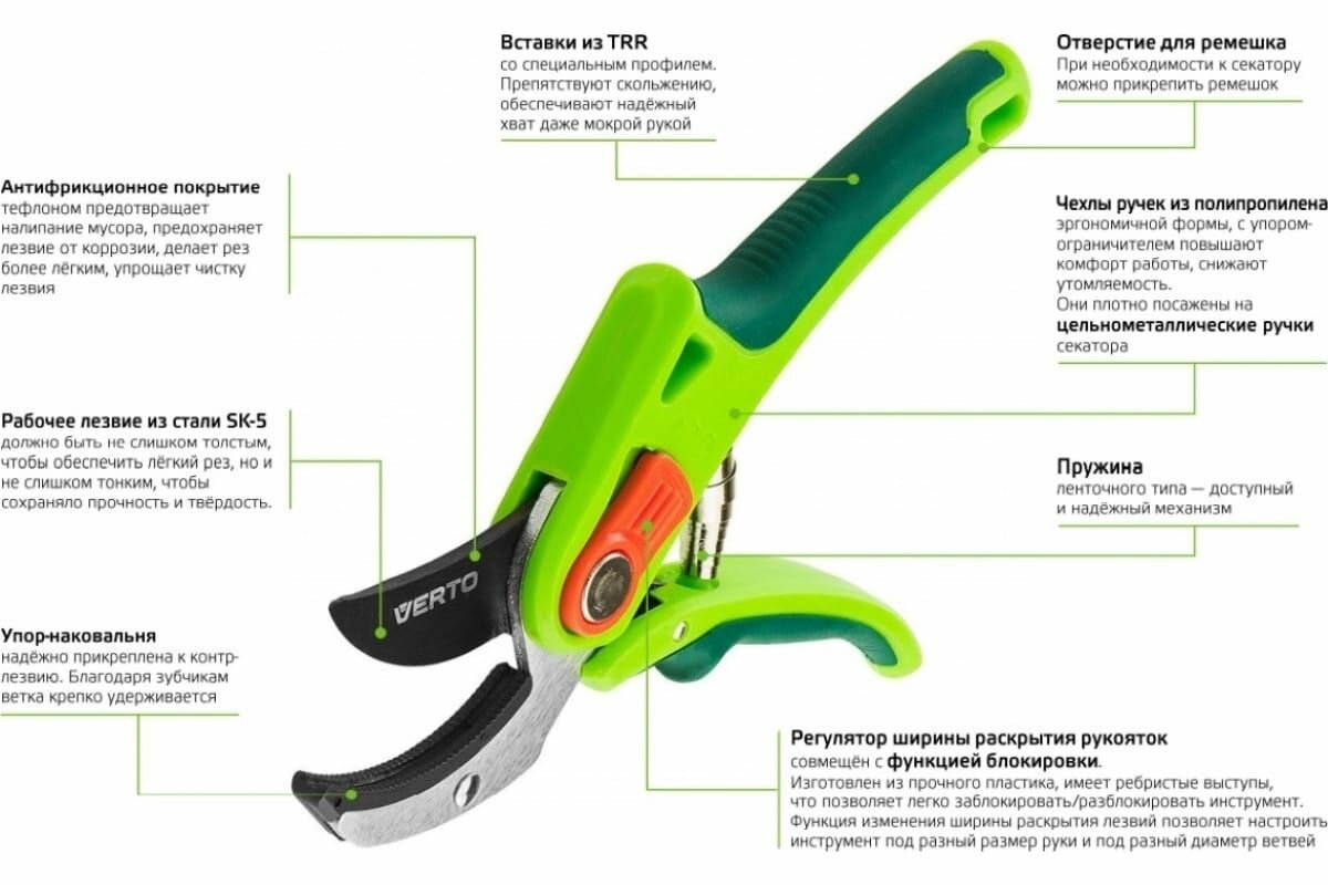 Отзывы на Садовый контактный секатор VERTO регулировка рабочего диапазона 15G203