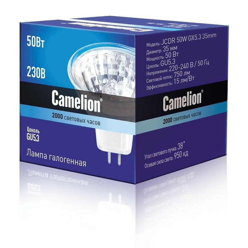 Галогенная лампа Camelion JCDR 50W GX5.3 35mm информация: