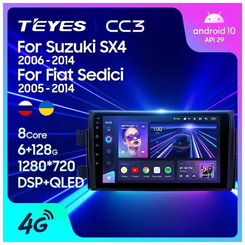 Отзывы на Штатная магнитола Teyes CC3 2K для Suzuki SX4 1 2006-2014 / Fiat Sedici 189 2005-2014 9" 6+128G