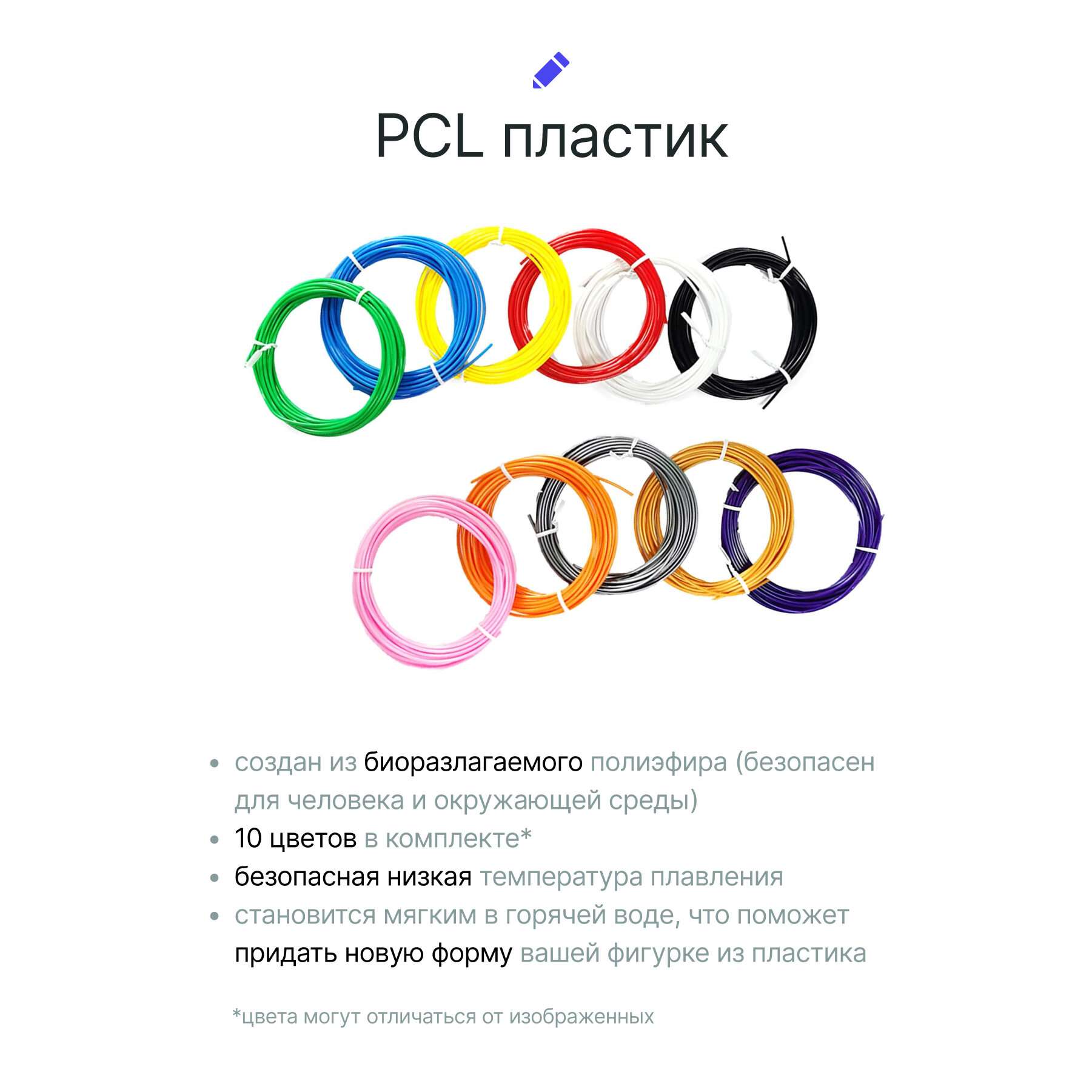 Комплект 3Д ручка NIT-PEN3 желтая + пластик PLA 10 цветов по 10 метров, в упаковке: 1
