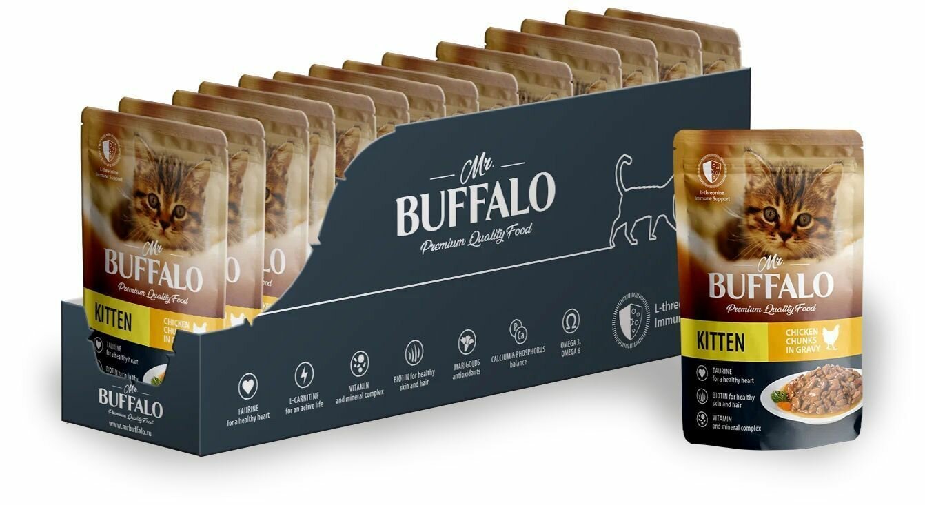Баффало Mr.Buffalo Kitten 28шт по 85г нежный цыпленок в соусе влажный для котят