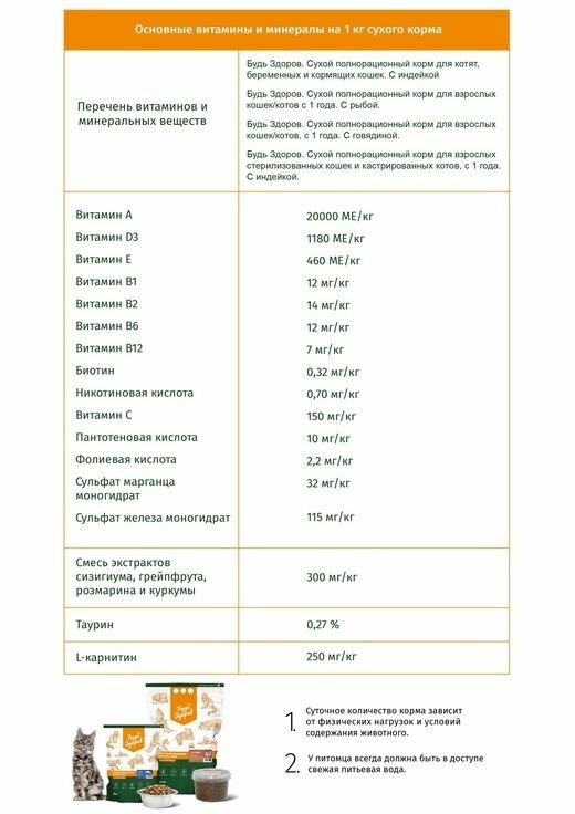 Будь здоров Сухой корм для котят, беременных и кормящих кошек с Индейкой информация: